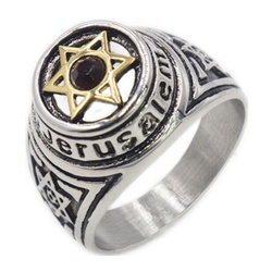 義烏Aceonステンレス鋼新しくデザインされたメンズサムバンドゴールドシルバーイスラエルのユダヤ人のヘキサグラムダイヤモンドジェムストーンスターリング