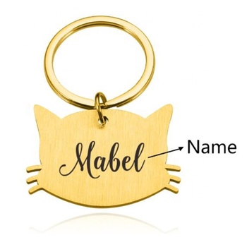 義烏Aceonステンレス鋼子犬犬タグペンダントペットヘッド形状カットアウトニャーかわいい猫の頭ひげキーホルダー付き