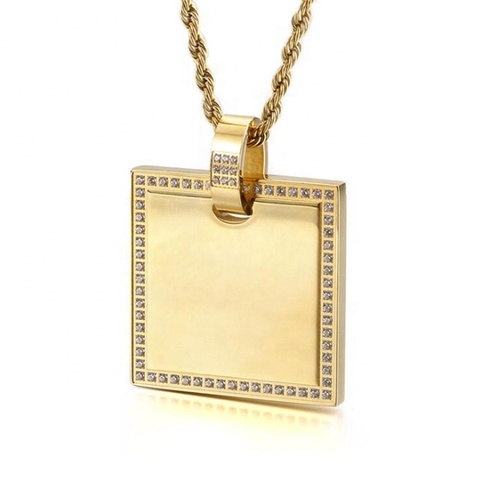 Yiwu Aceon, Juego de 4 puntas, Micro colgante de acero inoxidable, grabado DIY geométrico, piedra completa, borde pavimentado cuadrado con piedra principal de circón