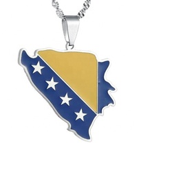 Yiwu Aceon ciondolo con mappa della Bosnia ed erzegovina in acciaio inossidabile con bordo ondulato inciso in profondità